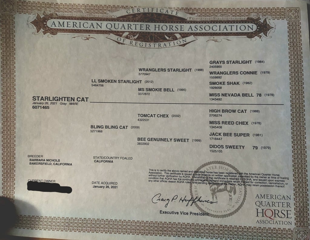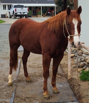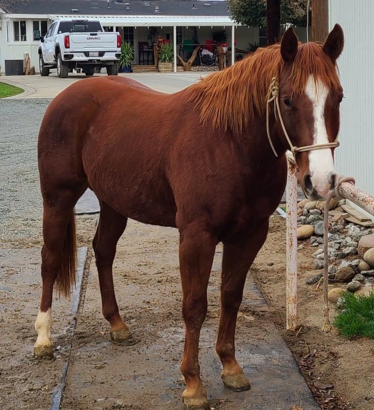 Good-minded and respectful on the ground. Loads, hauls, ties, and stands for the farrier.