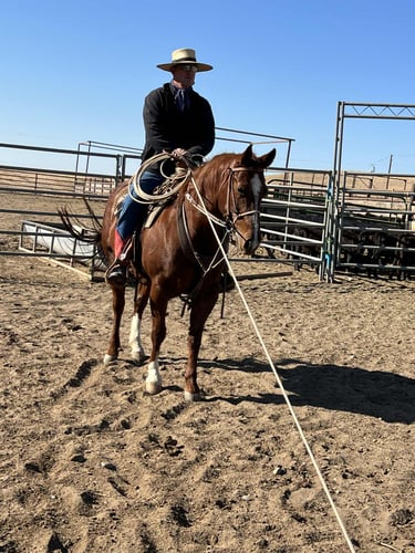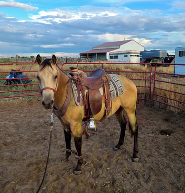 Cash is a broke, experienced gelding used for ranch work including gathering, sorting, branding, pasture doctoring, and more. He’s confident outside, handles cattle well, opens gates, and rides out quiet.